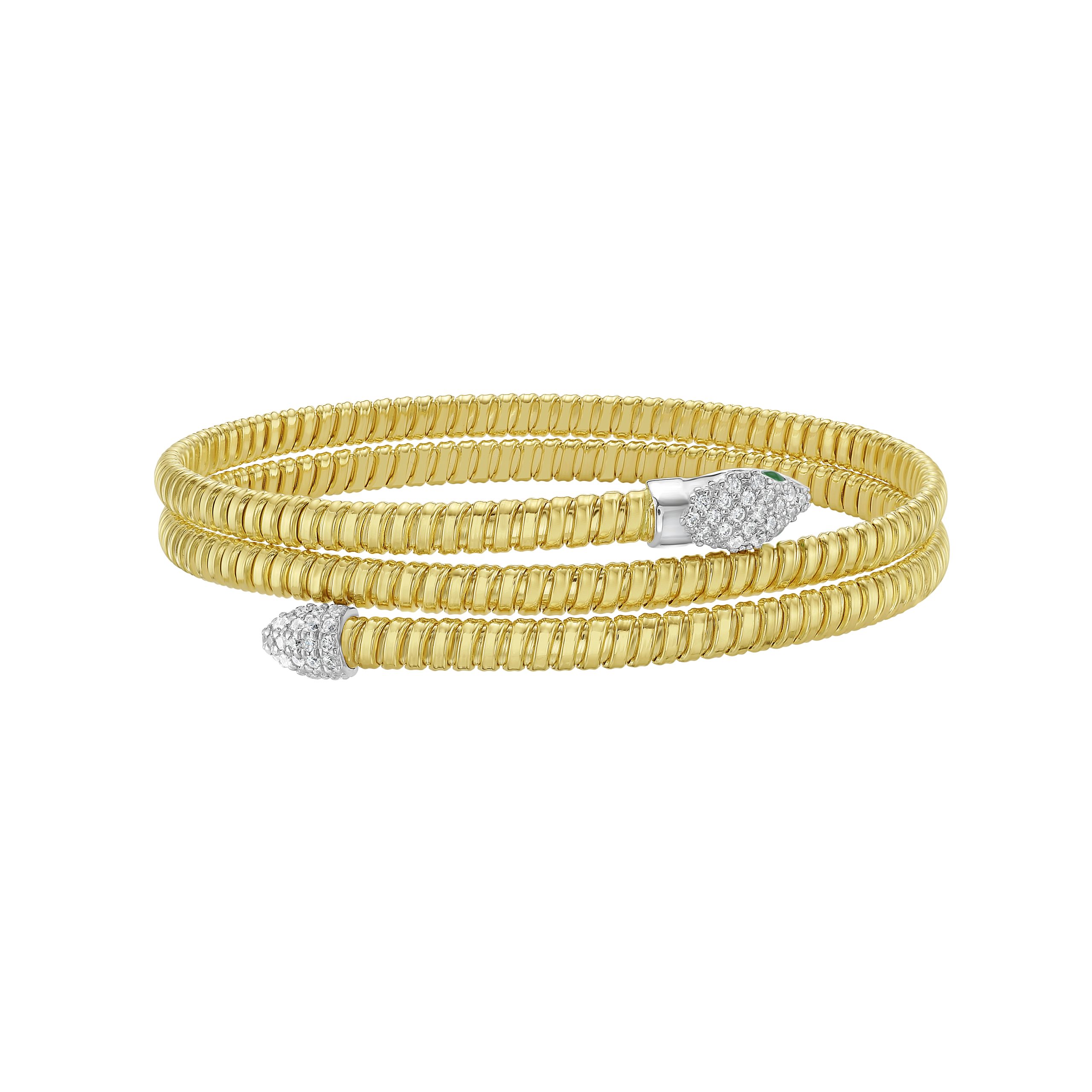 14K Yellow Gold .42ct Diamond Polished Snake Wrap-around Tubogas Bangle Diamond