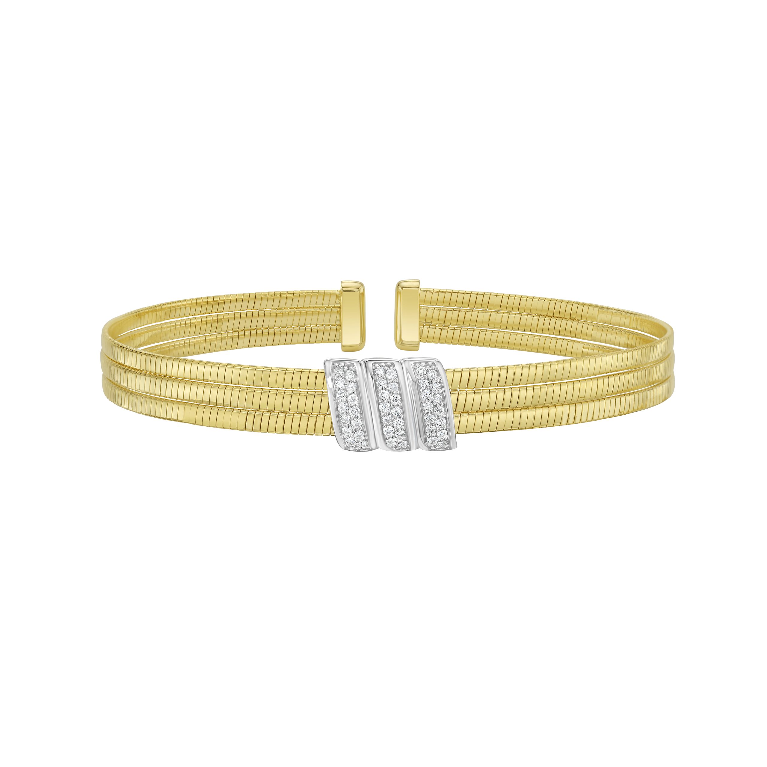 14K Yellow Gold Polished .21ct Diamond Triple Row Omega Cuff Bracelet Diamond