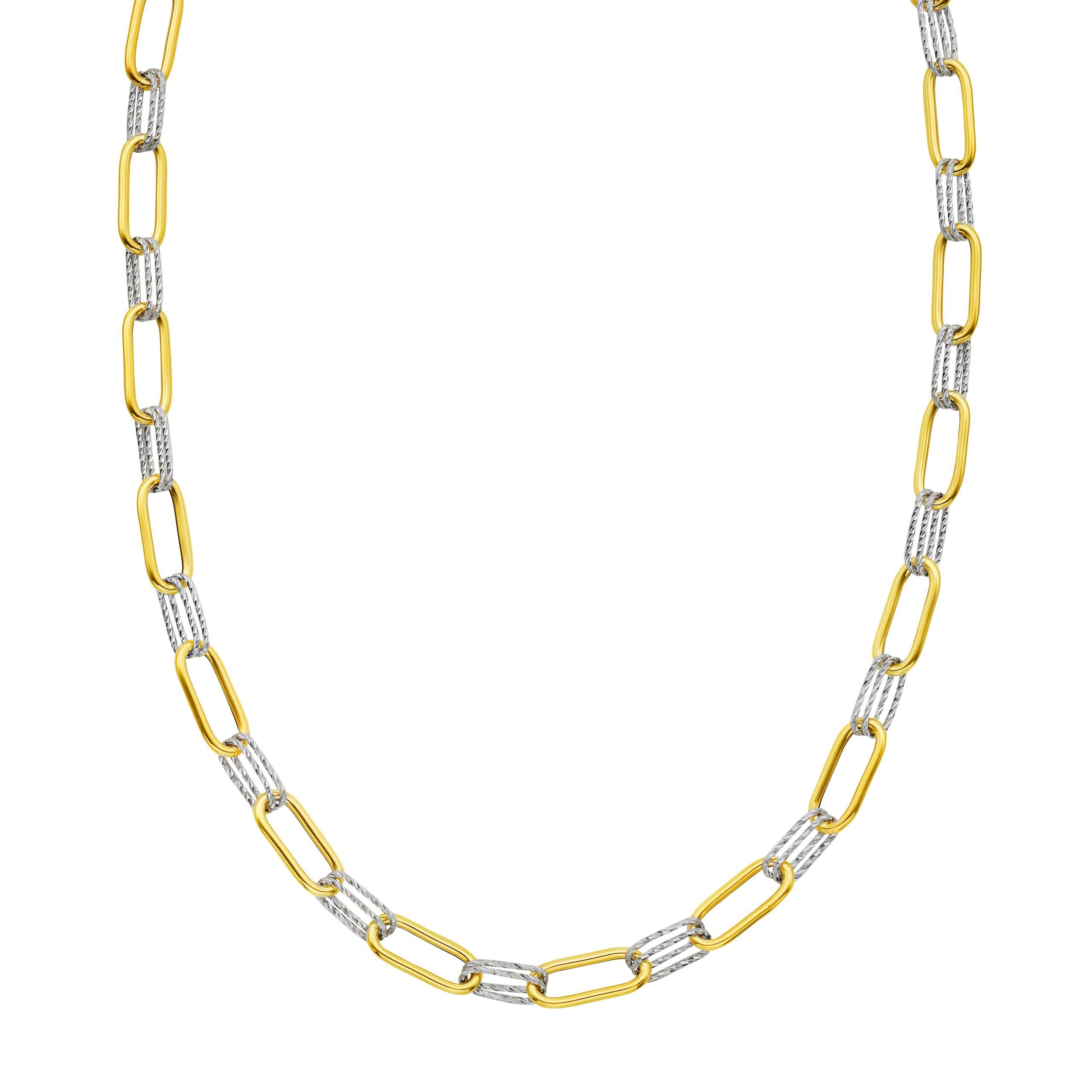 14K Yellow & White Gold Textured Diamante Paperclip Link 18″ Necklace with Lobster Clasp including 0.5″ Extender.