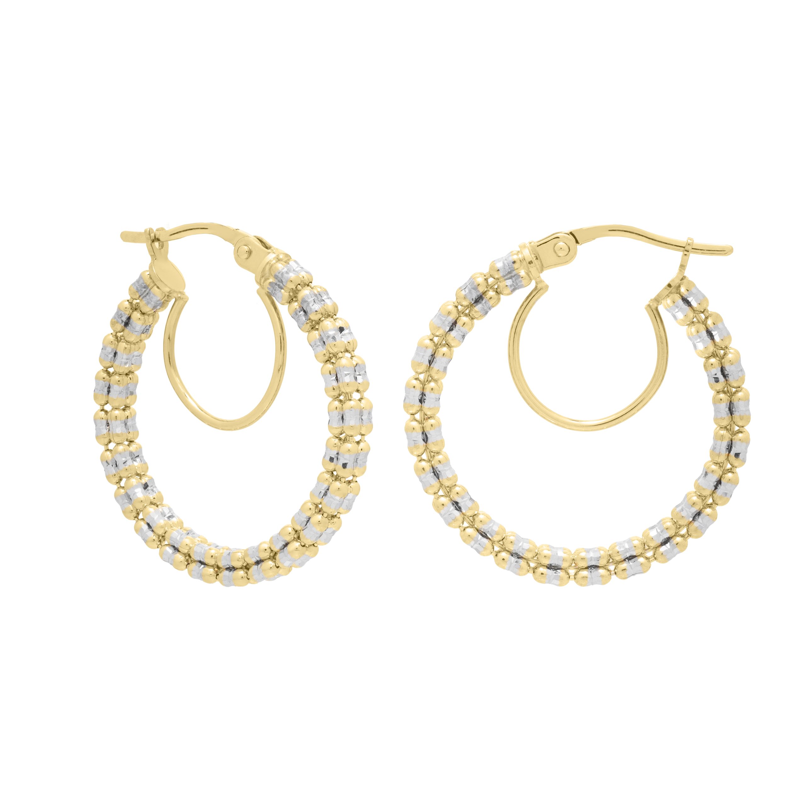 14K Two-tone Gold ICE CHAIN Look Round Hoops with Hinged clasp