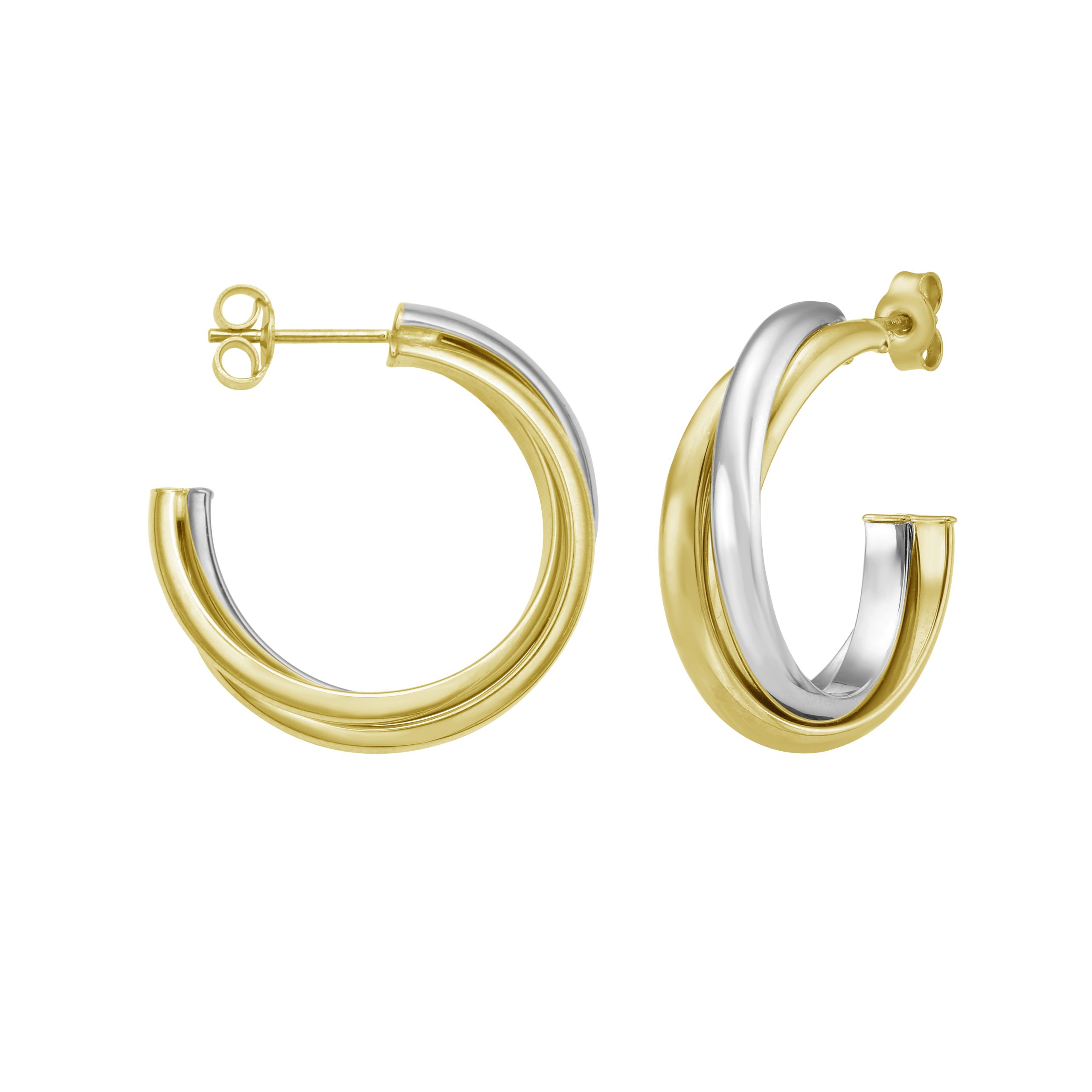 14K Two-tone Gold Interlocking Trinity C-Hoops with Push Back Clasp