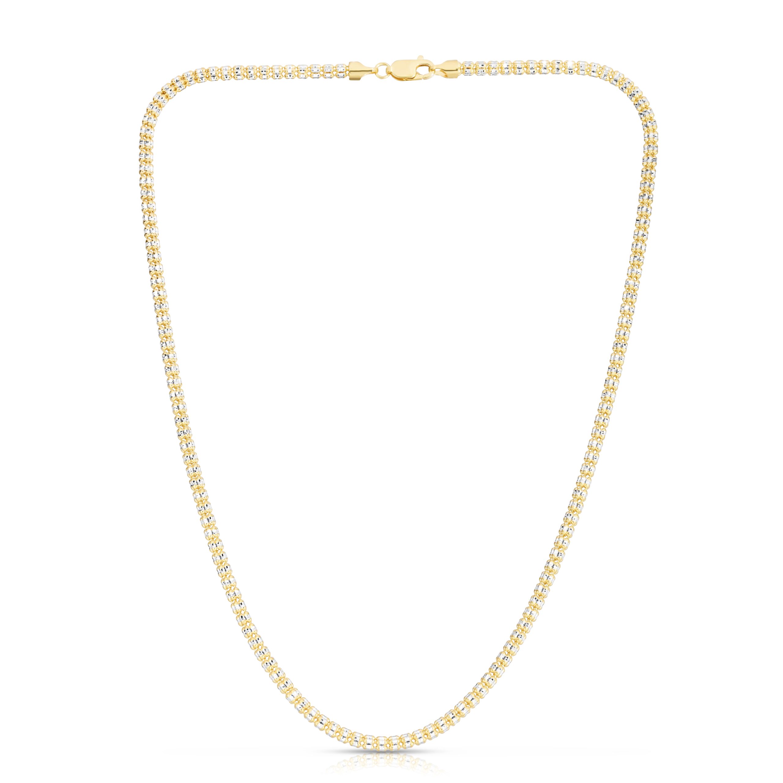 14K Two-tone Yellow Gold 20″ 3.3mm Fancy Ice Chain Necklace with Lobster Clasp