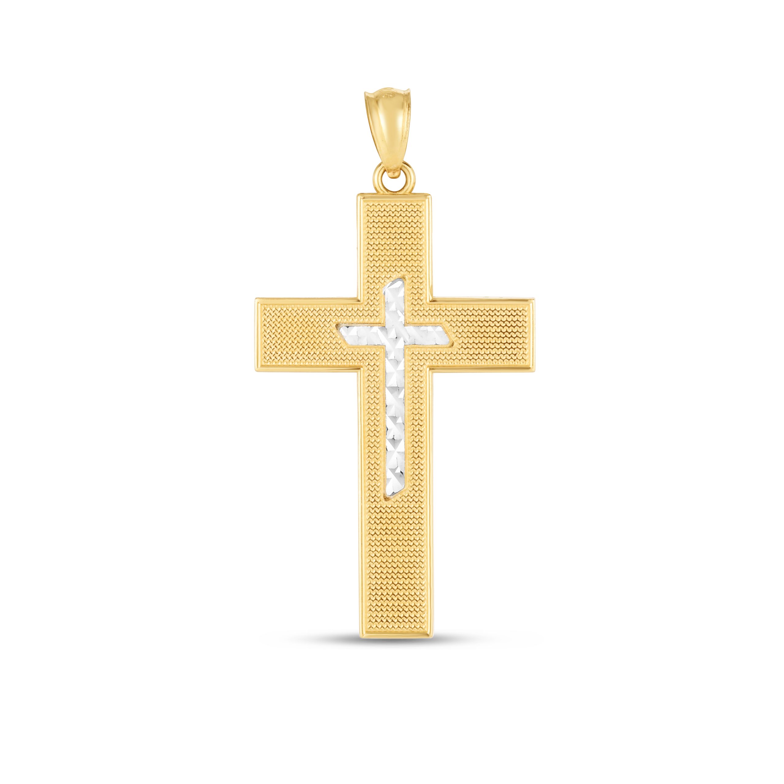 14K Two-Tone Diamond Cut Cross Pendant. Sold Individually. Pair it with any of our basic chains.