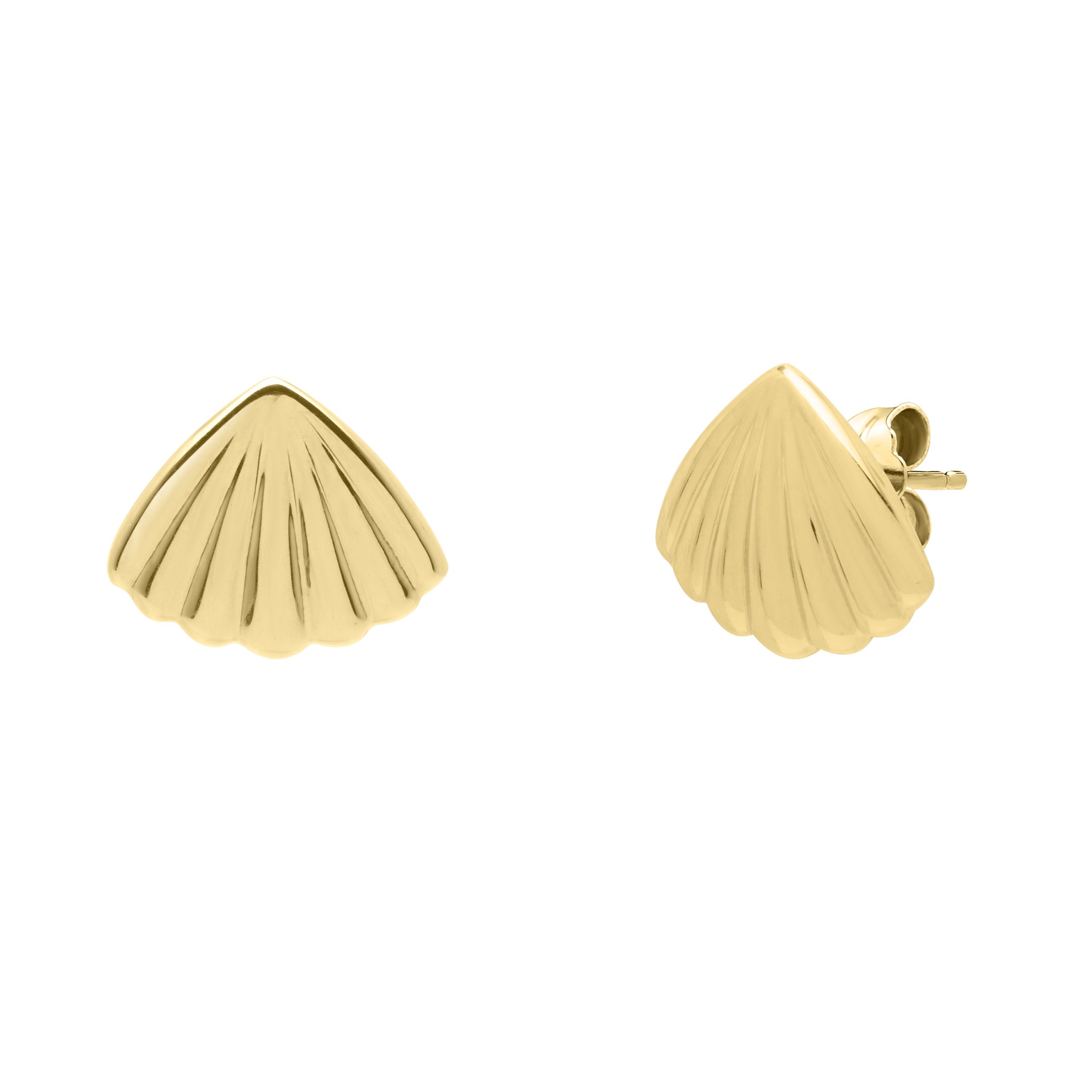 10K Yellow Gold Polished Sea Shell Stud Earring with Push Back Clasp