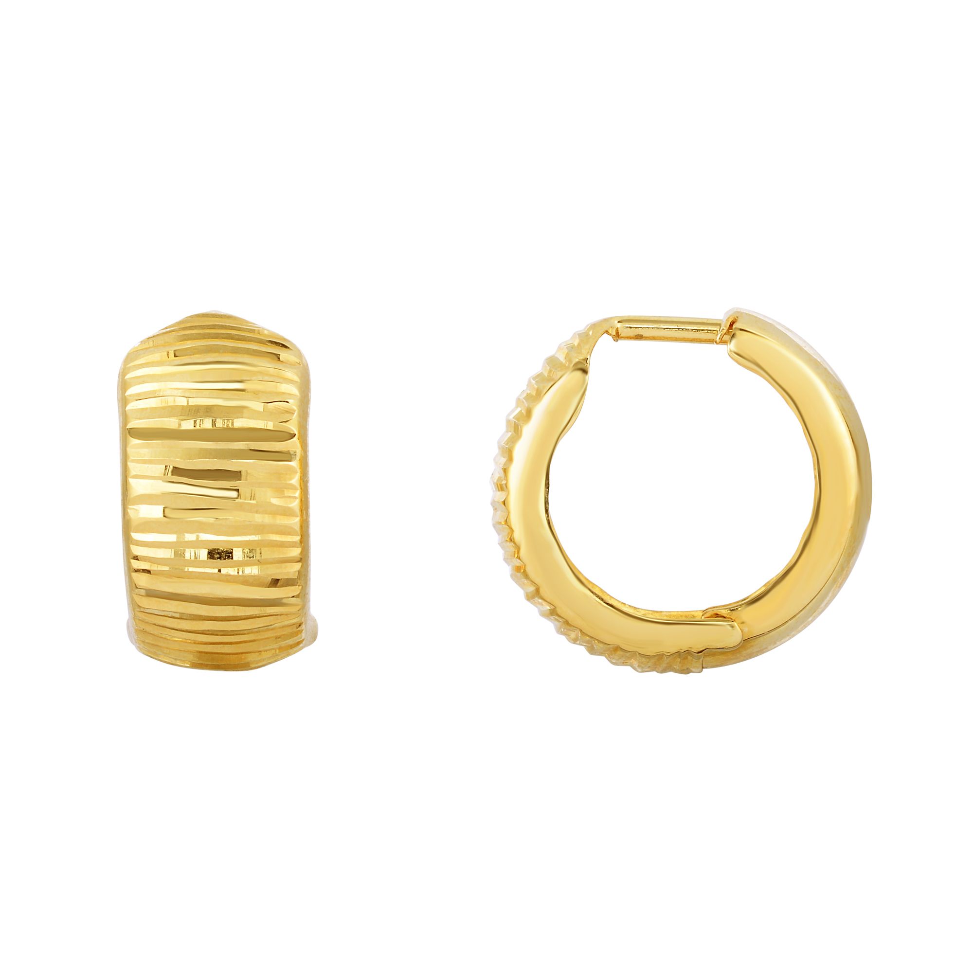 10K Yellow Gold Reversible Polished & Diamond Cut Huggie Earring