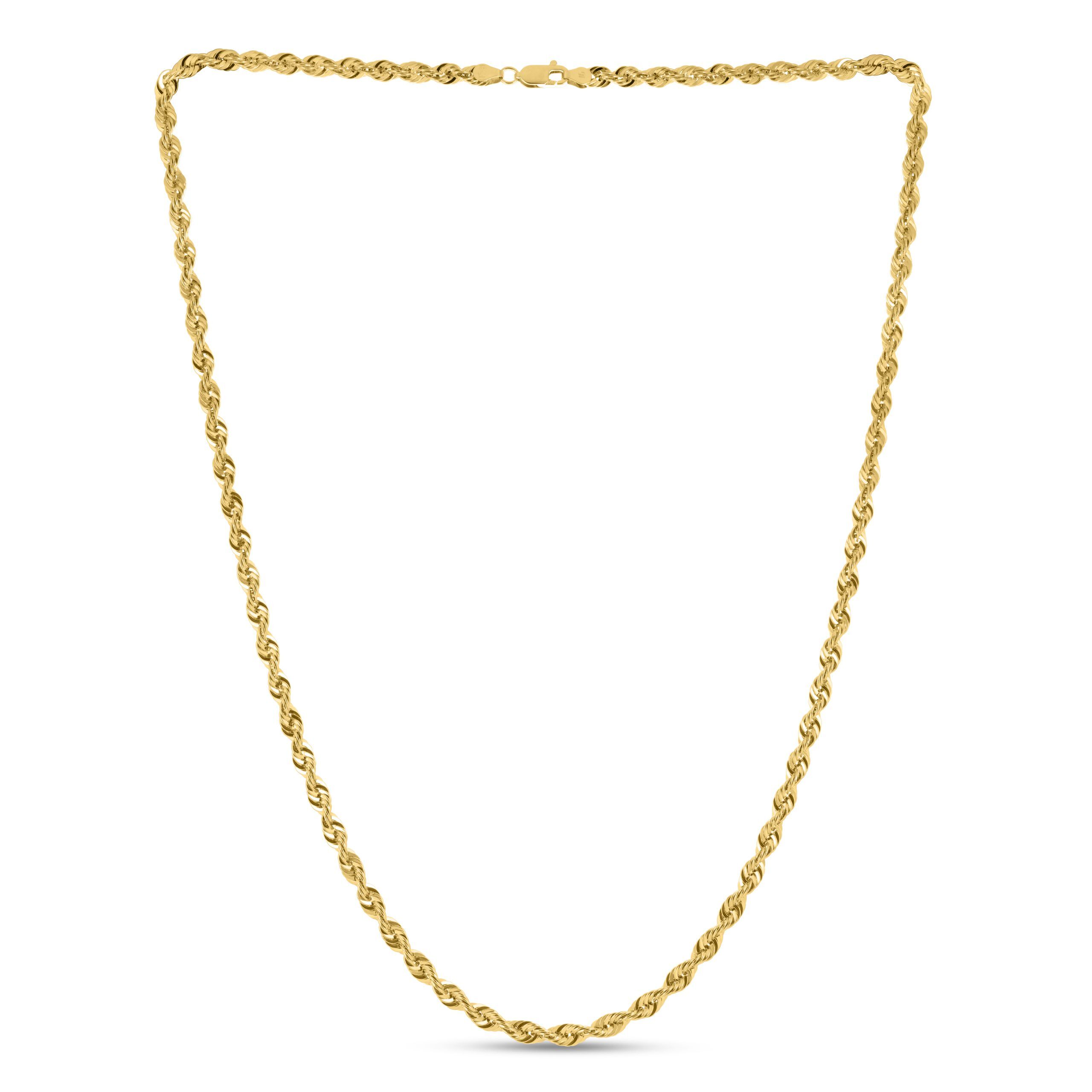 10K Yellow Gold 5mm 20″ Diamond Cut Semi-Solid Rope Chain with Lobster Clasp