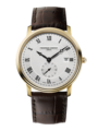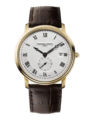YELLOW GOLD PLATED CASE, DIAMETER OF 39MM WITH SAPPHIRE CRYSTAL, HEIGHT 5.0MM. WATER-RESISTANT TO 3 ATM.