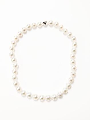 South Sea Pearl necklace with 37 Pearls measuring from 10-12 millimeters. The necklace features an 18 karat white gold round twist clasp. This necklace measures 17 inches in length.