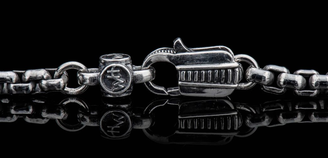 The complex geometry of each link presents as a simple, timeless piece that is finished with a gentle oxide and hand polish that beckons you closer, true to William Henry’s renowned style. Our custom lobster clasp, also sculpted in sterling silver, completes the presentation.