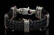 The ‘Tilt’ leather bracelet features a rich, widely woven kangaroo leather adorned with textured and patinated sterling silver details, offering a depth of appearance that is uniquely William Henry. This substantial piece showcases a level of quality andcraftsmanship that is infinitely wearable and impossible to overlook.