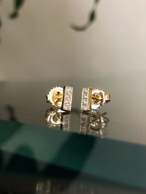 These simply beautiful studs from Kimberly Collins features 6=.10ctw Round G SI1 in 18k Yellow Gold