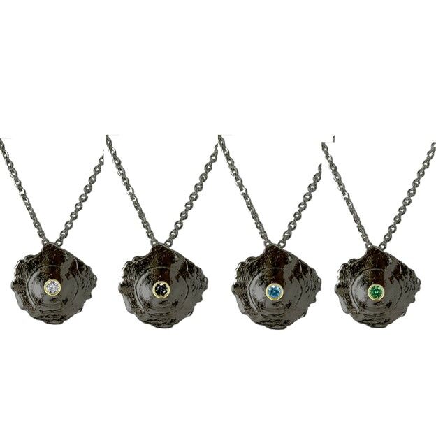 UNFRAMED OXIDIZED STERLING SILVER FLATTENED BULLET PENDANT with Gold Bezel Set 4mm Natural Diamond