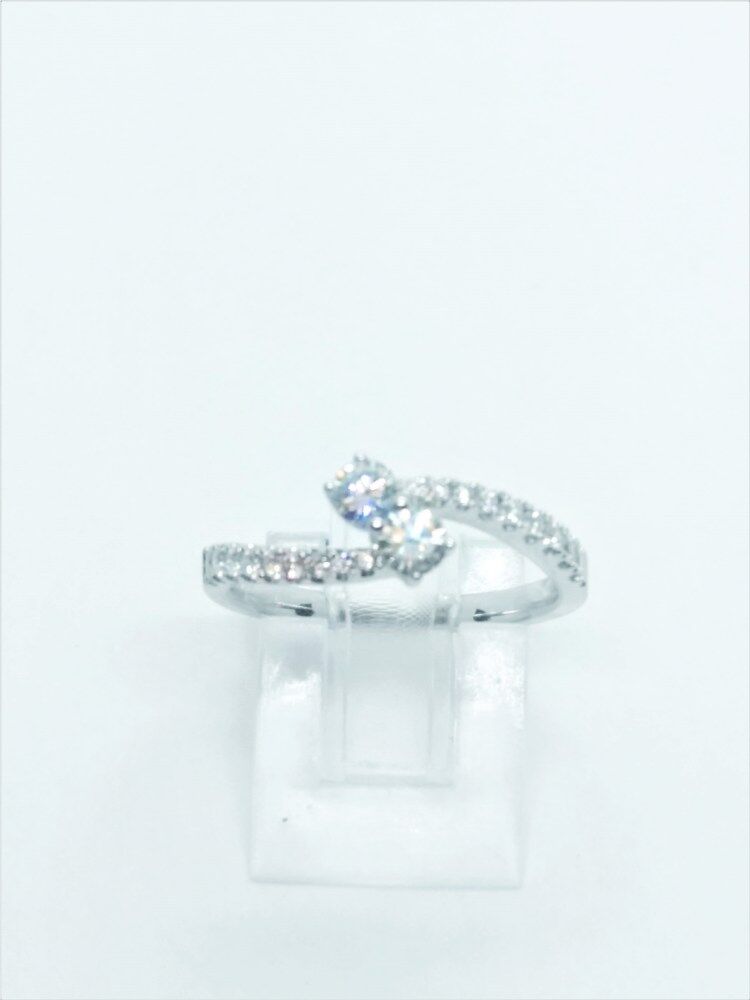 White 18 Karat By Pass Fashion Ring Size 6.75 With 2=0.35Tw Round G/H Vs2 Diamonds And 18=0.20Tw Round G/H Si1 Diamonds