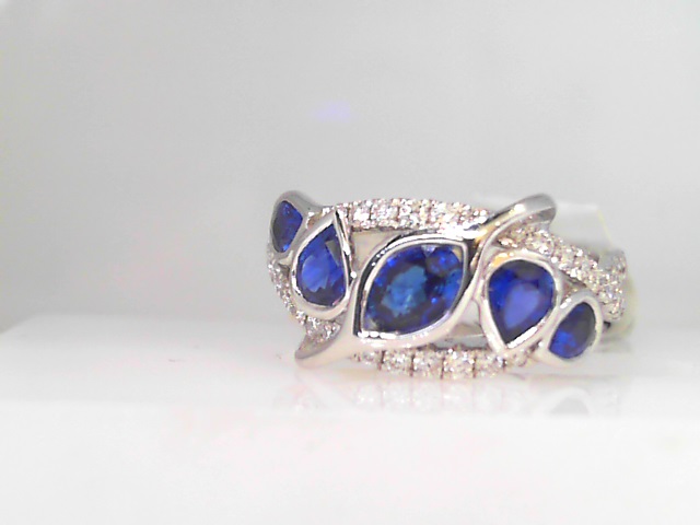 White 18 Karat Contemporary Fashion Ring Size 6.25 5=1.27tw Pear Blue Sapphires