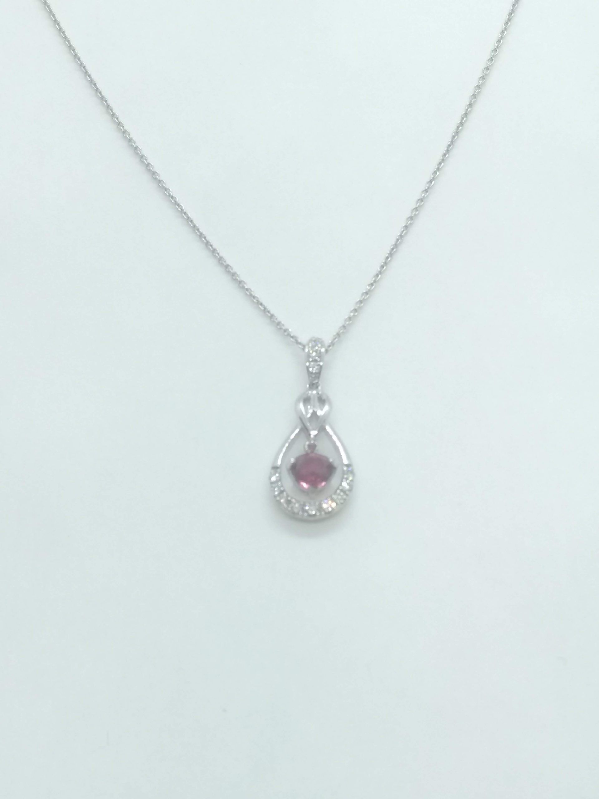 White 18 Karat Drop Necklace With One 0.40Ct Round Burma Red Ruby And 13=0.17Tw Round F/G Si1 Diamonds Chain: Cable Link