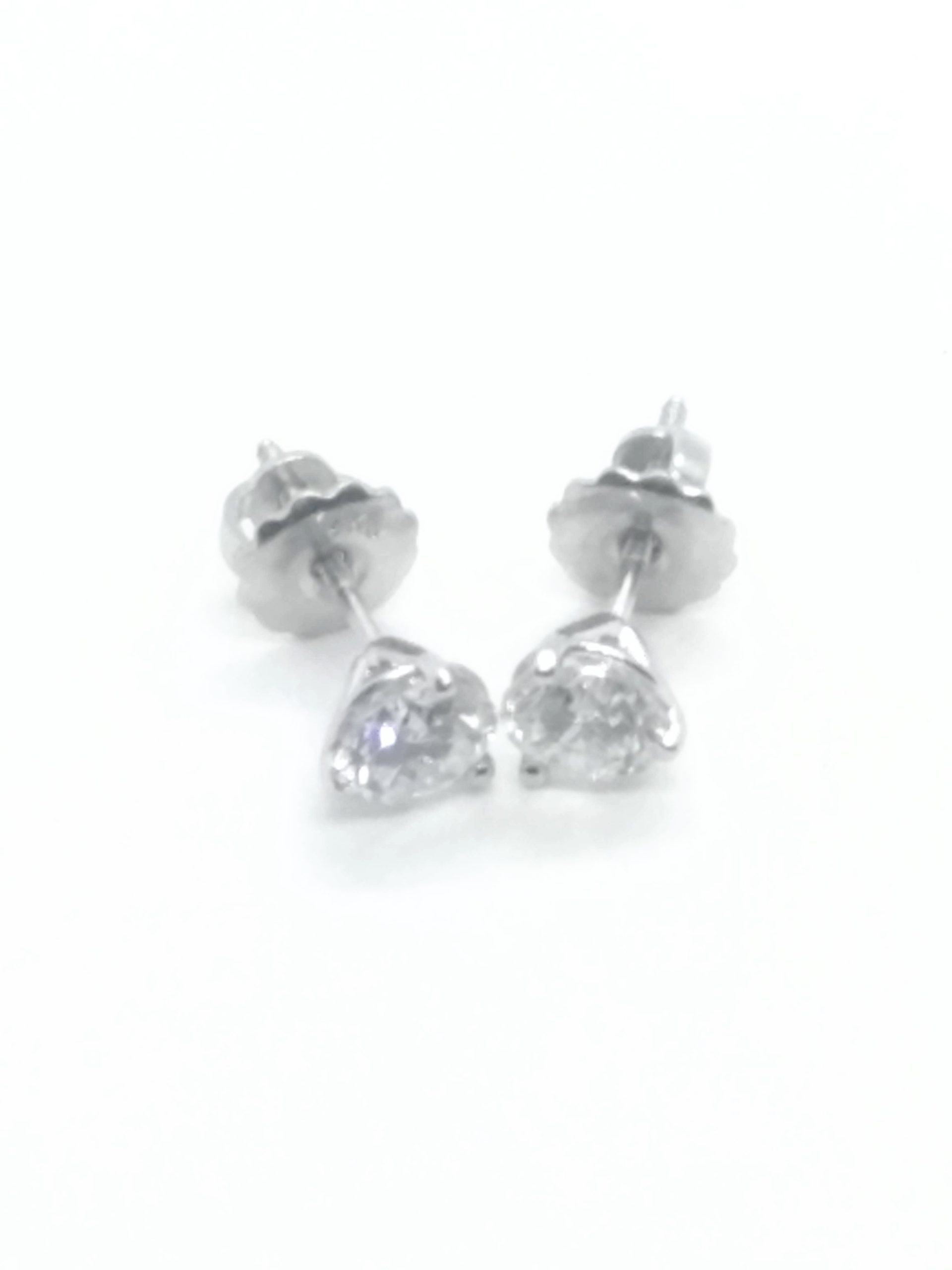 White Polished 14 Karat Round 3 Prong Cocktail Style Threaded Stud Earrings 2=1.00tw Round F/G SI1 Diamonds