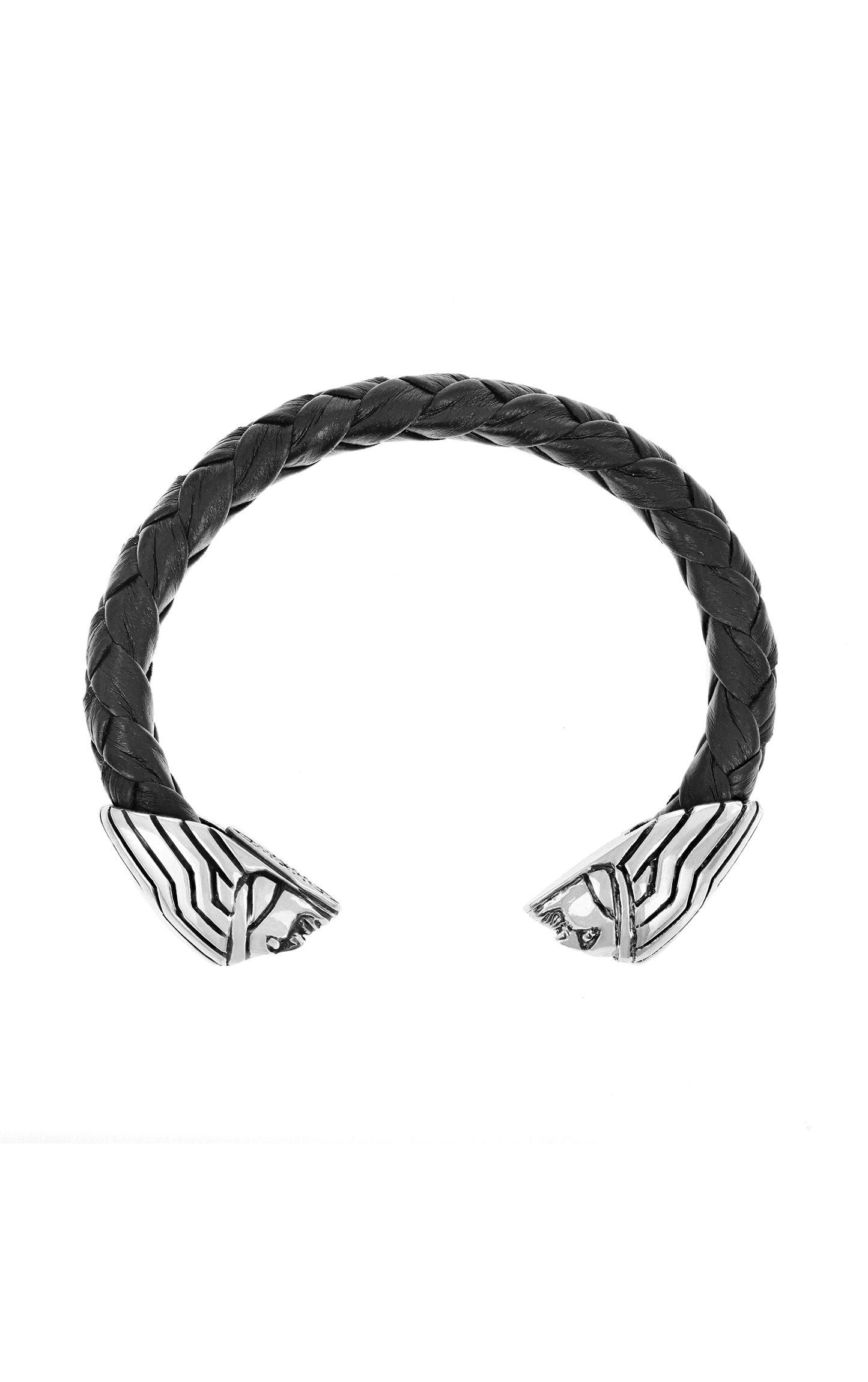 White Polished Sterling Silver Leather Wrap Indian Bracelet Length 8.75