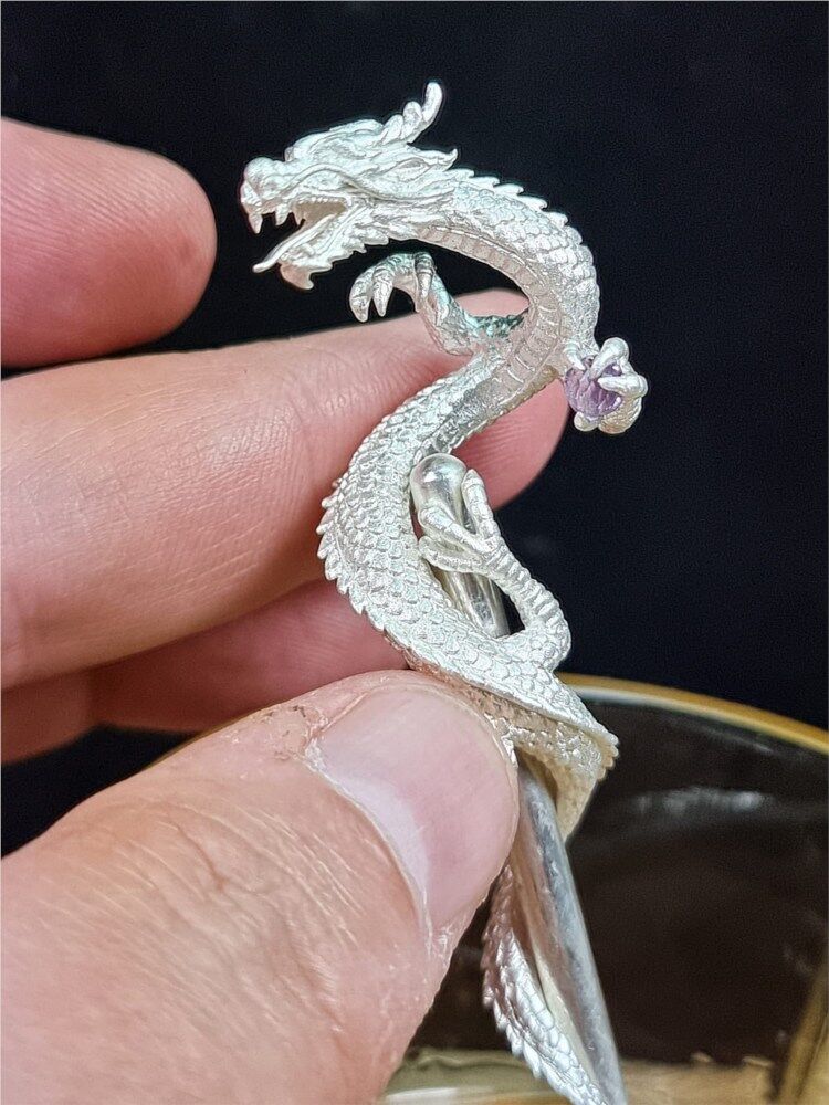 The carved dragon detaches and can be worn as a pendant on your own chain.