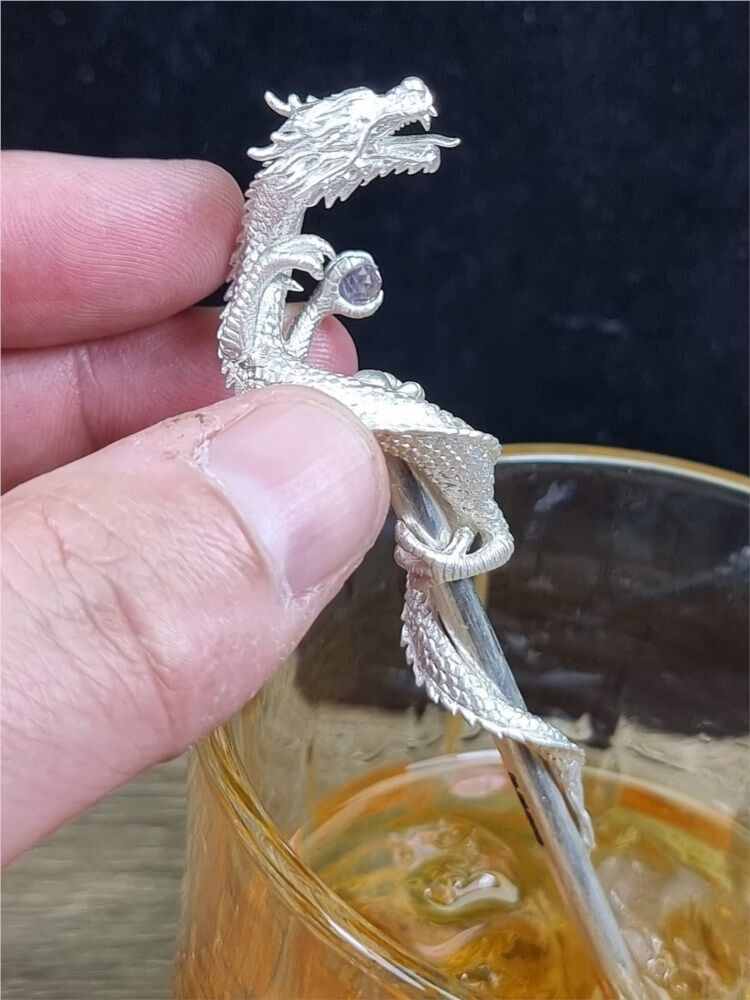 Introducing exclusive collectible swizzle sticks. These are handmade in solid Sterling Silver (about an ounce in each piece), and set with a faceted Amethyst ball (Amethyst has the mythological property of preventing drunkenness).